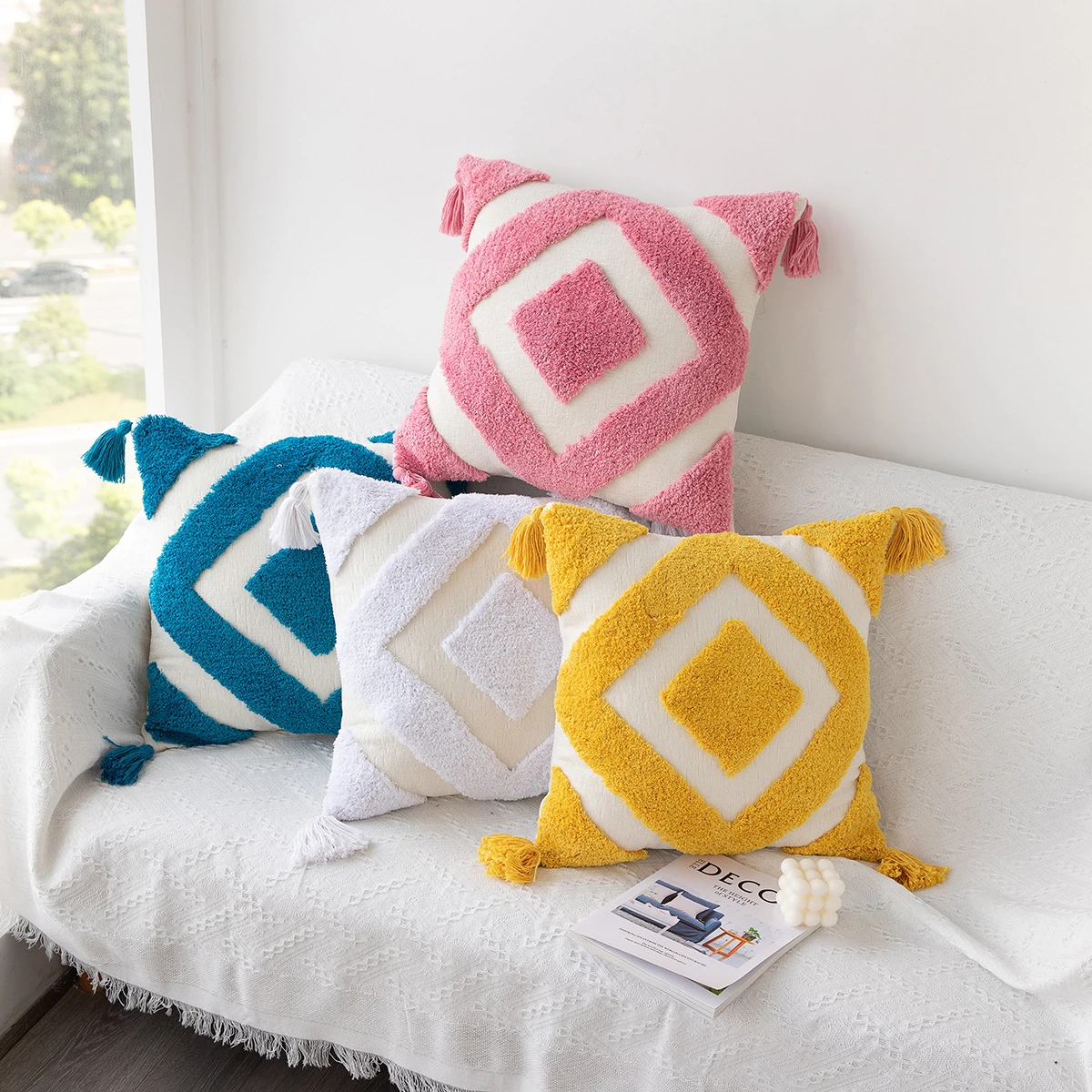 Nordic Pillowcase Ins Simple Pattern Moroccan Bohemian Style Waist Pillow Cover Pillowcase Sofa Tassel Tufted Cute Pillow Case Cushion Aliexpress